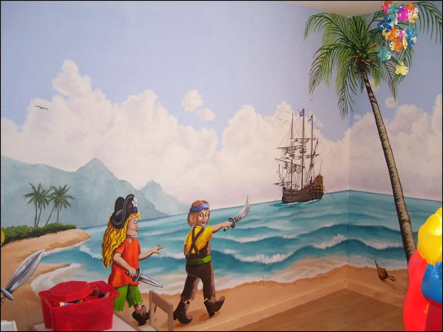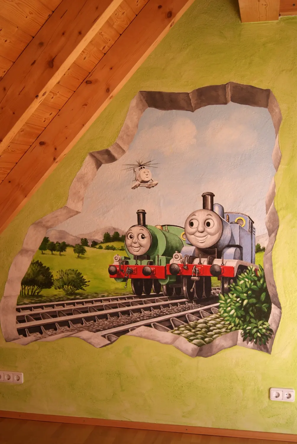 Bunte Wandmalerei in der Aula einer Förderschule in Hösbach